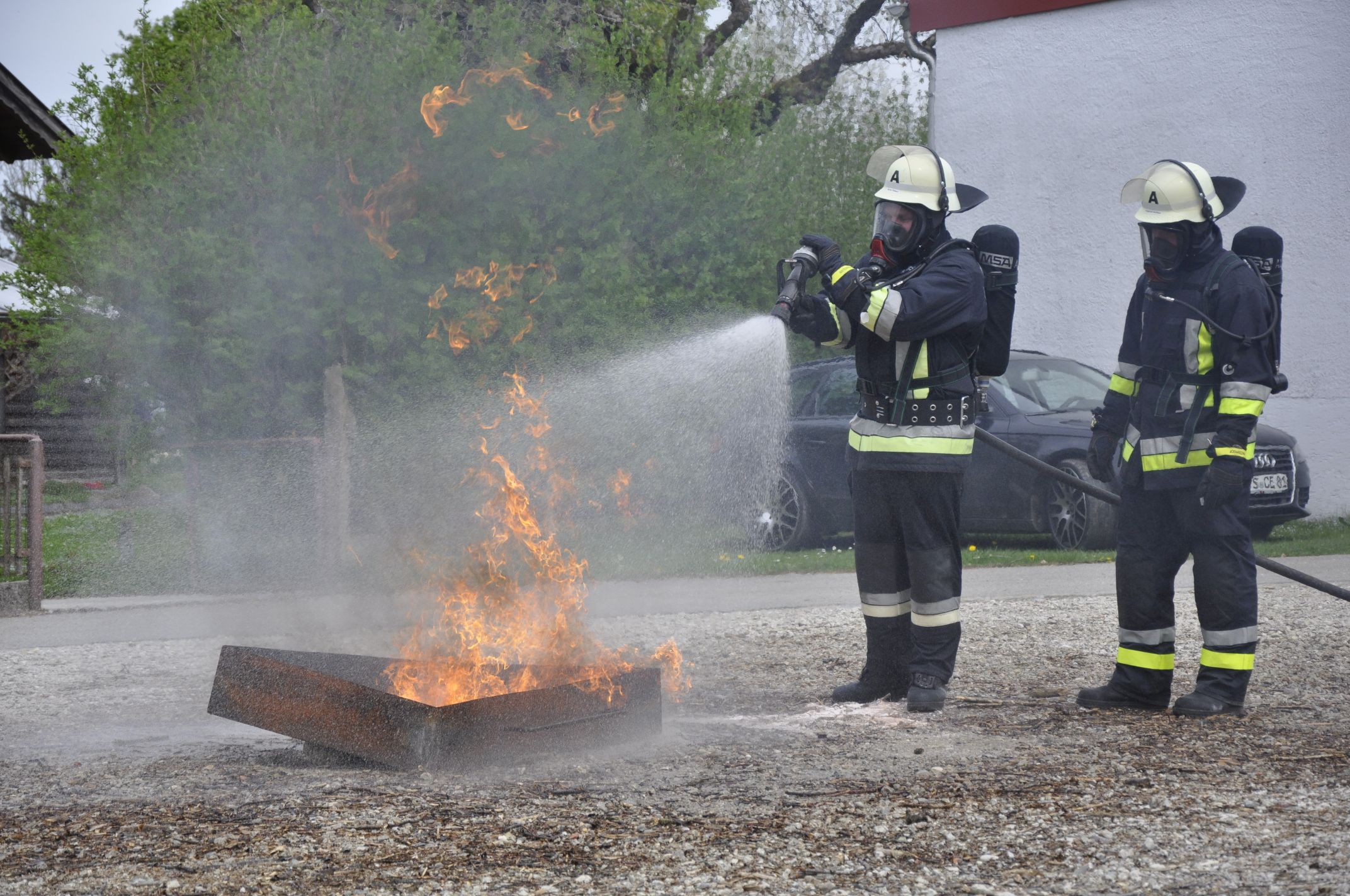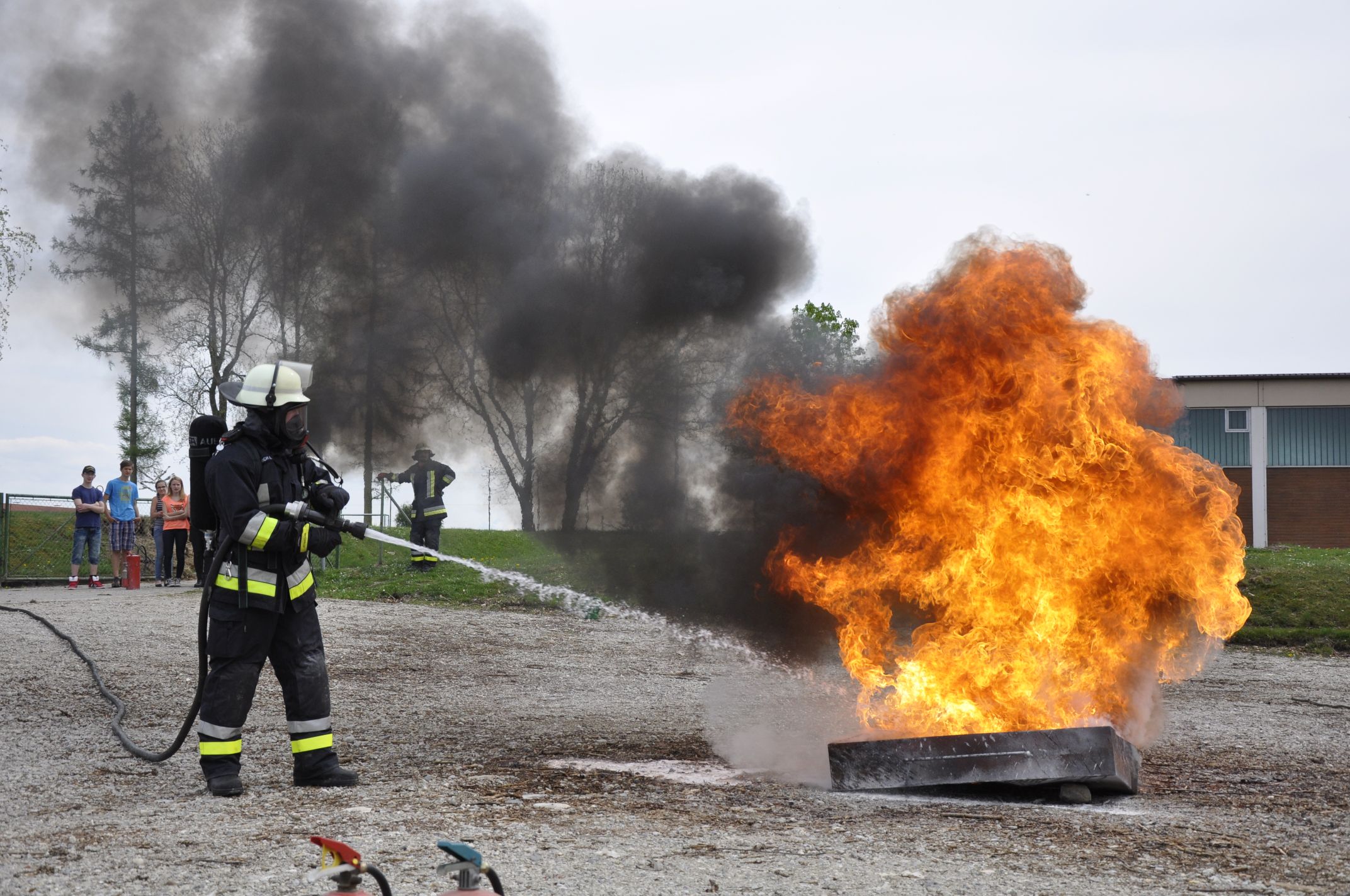 Viel Aufwand haben die Aktiven rund um die beiden Kommandanten Stefan Kellner und Anita Thaler, sowie Jugendleiter Christoph Empl betrieben, um beim Anwerbetag für die Freiwillige Feuerwehr die Jugendlichen für die Arbeit der Floriansjünger zu begeistern. Derzeit werde es immer schwieriger Nachwuchs für ehrenamtliches Engagement zu gewinnen, weiß Stefan Kellner. Vor allem nach der Schule wissen viele nicht mehr, wie sie ihre Freizeit gestalten können. Gerade deshalb sei es wichtig, den Jugendlichen ab 14 Jahren eine sinnvolle Freizeitbeschäftigung anzubieten. Es gilt aber auch den Nachwuchs in der Feuerwehr zu sichern um die nötige Hilfestellung im Notfall gewährleisten zu können. Hier möchte die Feuerwehr Heiligkreuz als gutes Beispiel Vorbild sein. Unter dem Motto „Wir sind dabei. Wo bleibst du?“ konnten sie über 80 Einladungen an die in Frage kommenden Jugendlichen versenden. 15 junge Heiligkreuzer und Wäschhauser nutzen die Gelegenheit am vergangenen Wochenende, um hinter die Kulissen der Floriansjünger zu blicken. Nach einer kurzen Theorieeinheit wurde das Feuerwehrfahrzeug unter die Lupe genommen. Die fünf Mädels und zehn Burschen scheuten sich nicht, Atemschutzgeräte anzulegen oder besondere Schutzanzüge anzuziehen. An der Grundschule hatten die Aktiven eine Showübung aufgebaut. Dass Fett und Benzin nicht mit Wasser zu löschen ist, wurde hier eindrucksvoll bewiesen. Stefan Kellner wies dabei auf die richtige Handhabe mit Feuerlöschern und ordnungsgemäße Prüfung hin. Ganz praktisch ans Werk ging es für die Jugendlichen als mittels Hebekissen eine fiktive eingeklemmte Person unter einem Container geborgen wurde. Vom Dach der Radlhalle an der Grundschule waren die Jugendlichen wiederrum im Einsatz, denn sie retteten sich selbst als angenommende verletzte Person mittels dem Leiterhebel. Abschließend durften sie noch Wasser aus einem Unterflurhydranten entnehmen. 14 Jugendliche aus der Gruppe haben sich nach dem sehr informativen Tag zur Freude der Verantwortlichen entschieden die Jugendausbildung zu beginnen.
